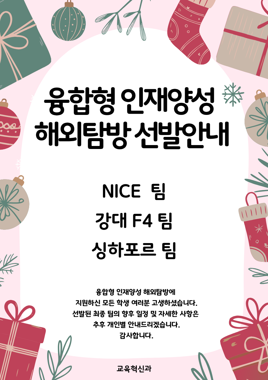 2025학년도 융합형 인재양성 해외탐방 최종선발 안내