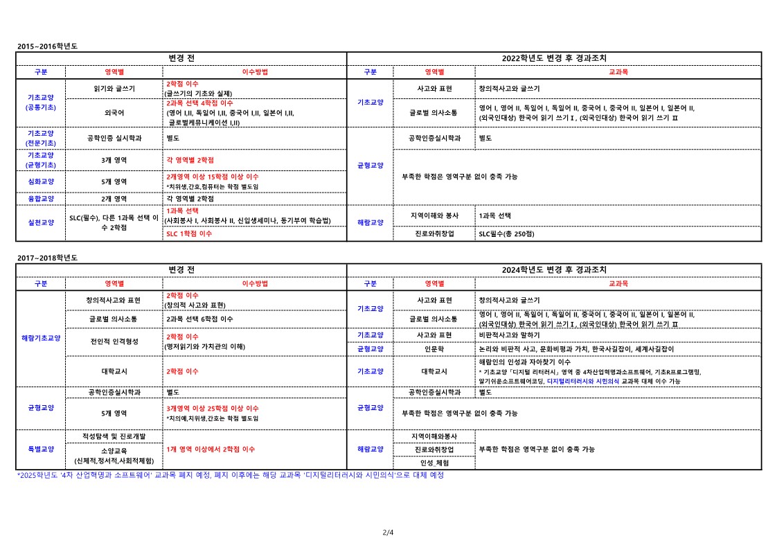 2024학년도 교육과정 개편에 따른 교양 경과조치 안내