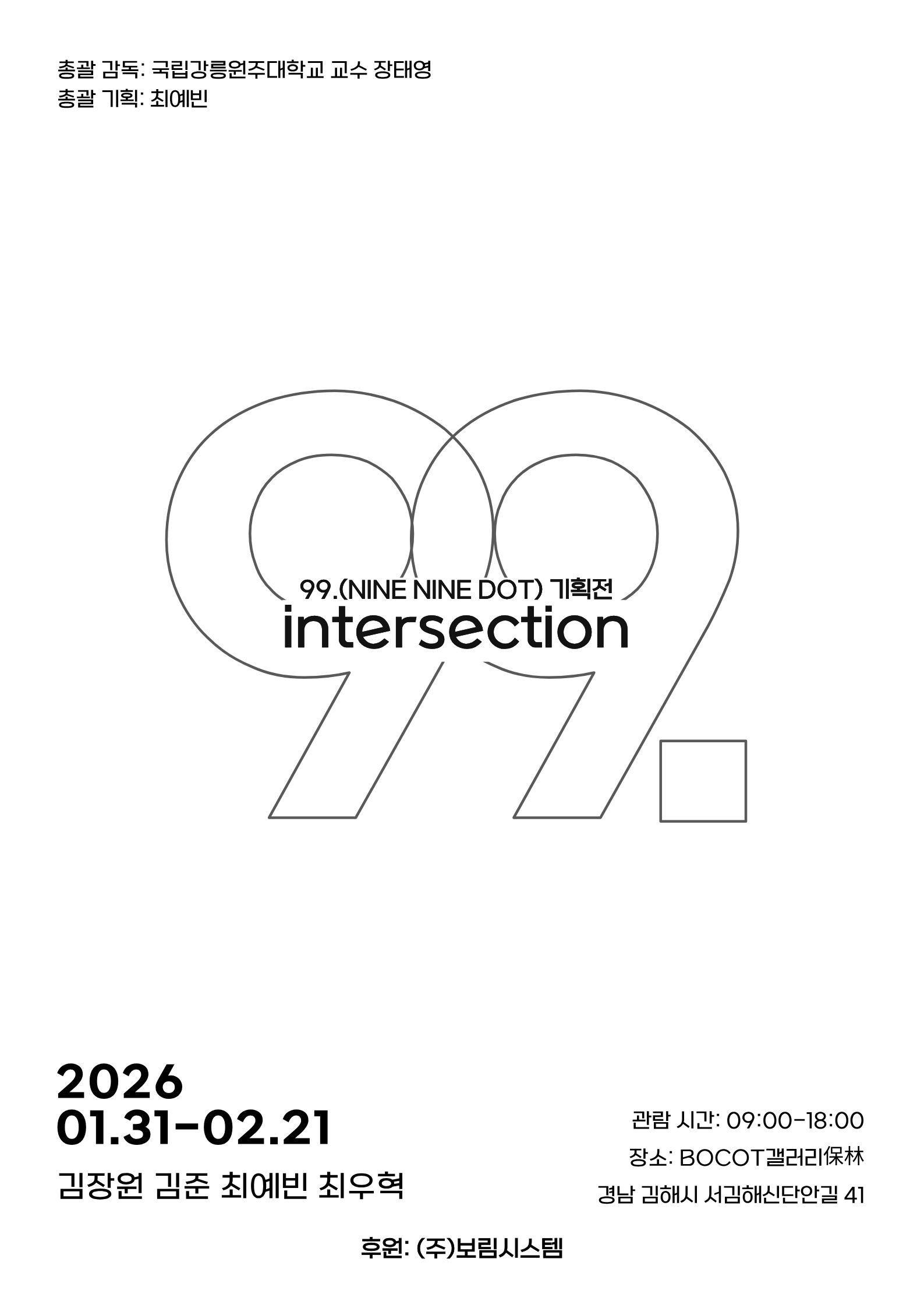 2026 조형예술·디자인학과 99. 기획전 <intersection>-BOCOT갤러리 保林