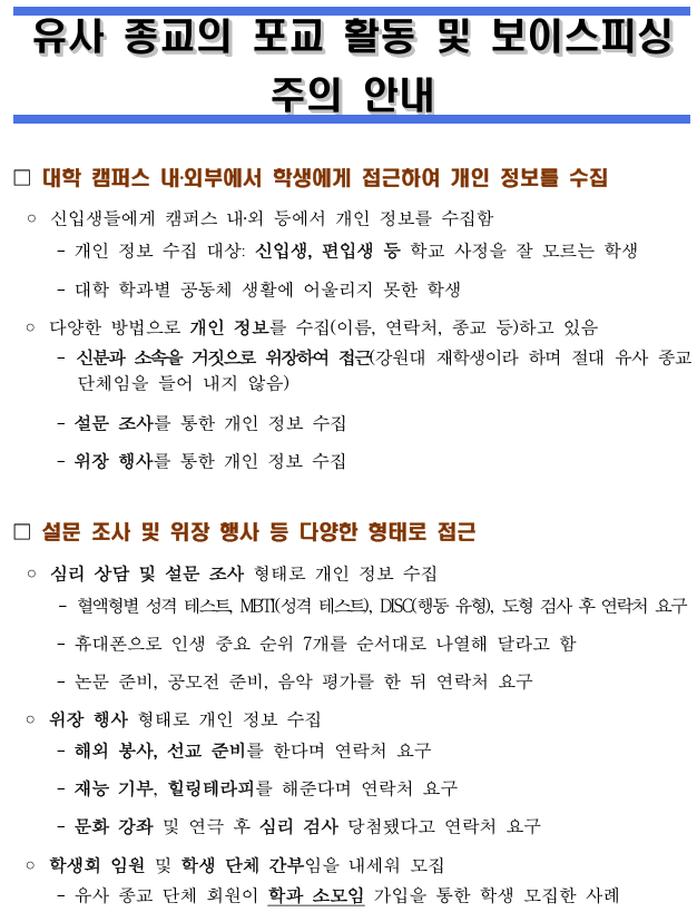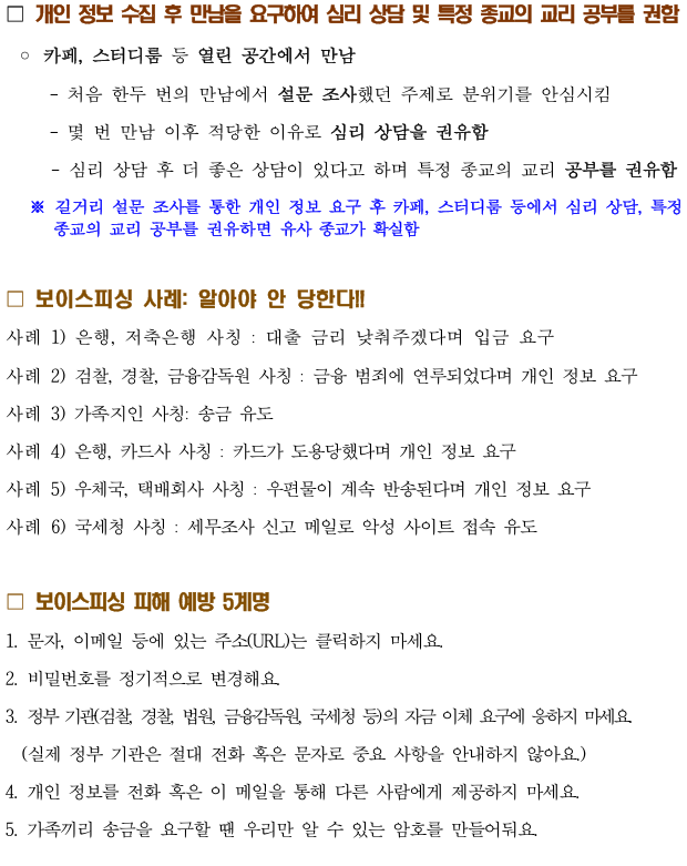 신학기 유사종교 포교 활동 및 보이스피싱 주의 안내