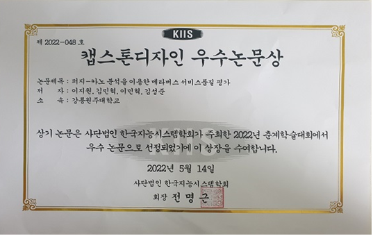 과학기술대학 산업경영공학과, 한국지능시스템학회 「캡스톤디자인 우수논문상」 수상