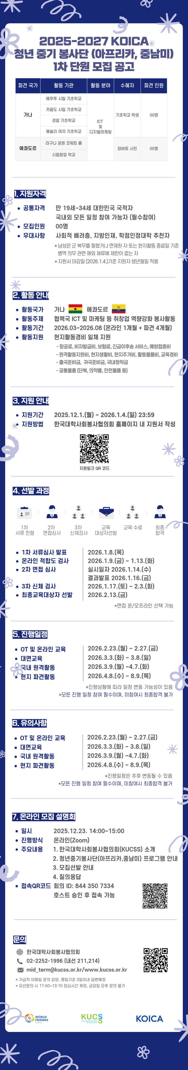 2025-2027 코이카-청년중기봉사단(아프리카, 중남미) 1차 단원 모집