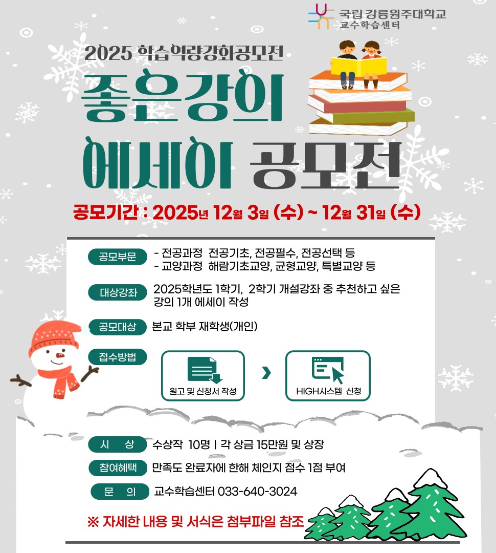 [교수학습센터] 2025학년도 학습역량강화 공모전(좋은강의에세이)