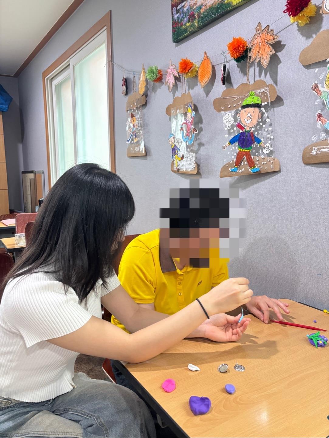 요리, 미술, 공예, 체육, 산책 등 다양한 프로그램에 참여하며 성인 발달장애인들의 활동을 밀착 보조합니다. 요리활동에서는 도마와 식재료 준비, 조리 보조를 맡으며 정서적 교류와 소통을 통해 유대감을 형성합니다. 미술·공예 프로그램에서는 클레이 만들기, 그림 그리기, 구슬 꿰기 등의 활동을 1:1로 지원하며 참여자의 자율성과 표현을 존중하는 자세를 배울 수 있습니다.