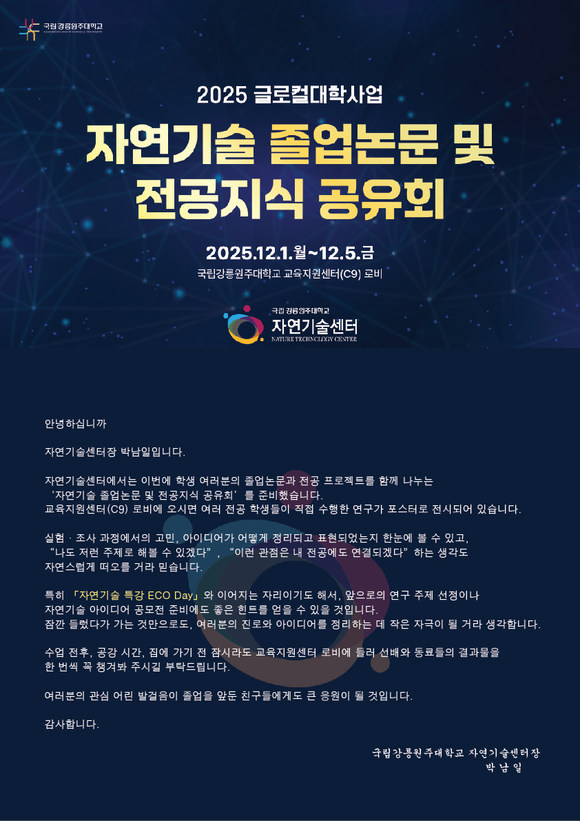 자연기술 졸업논문 및 전공지식 공유회 개최 알림