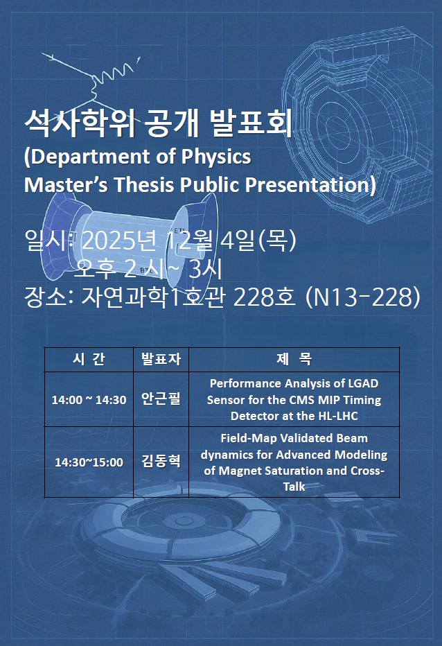일반대학원 물리학과, 석사학위 공개 발표회 알림(12월04일)