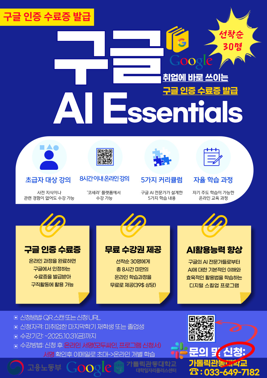 ◈ 관련 문의: 가톨릭관동대학교 대학일자리플러스센터 김정화 취업지원관(033-679-7182)