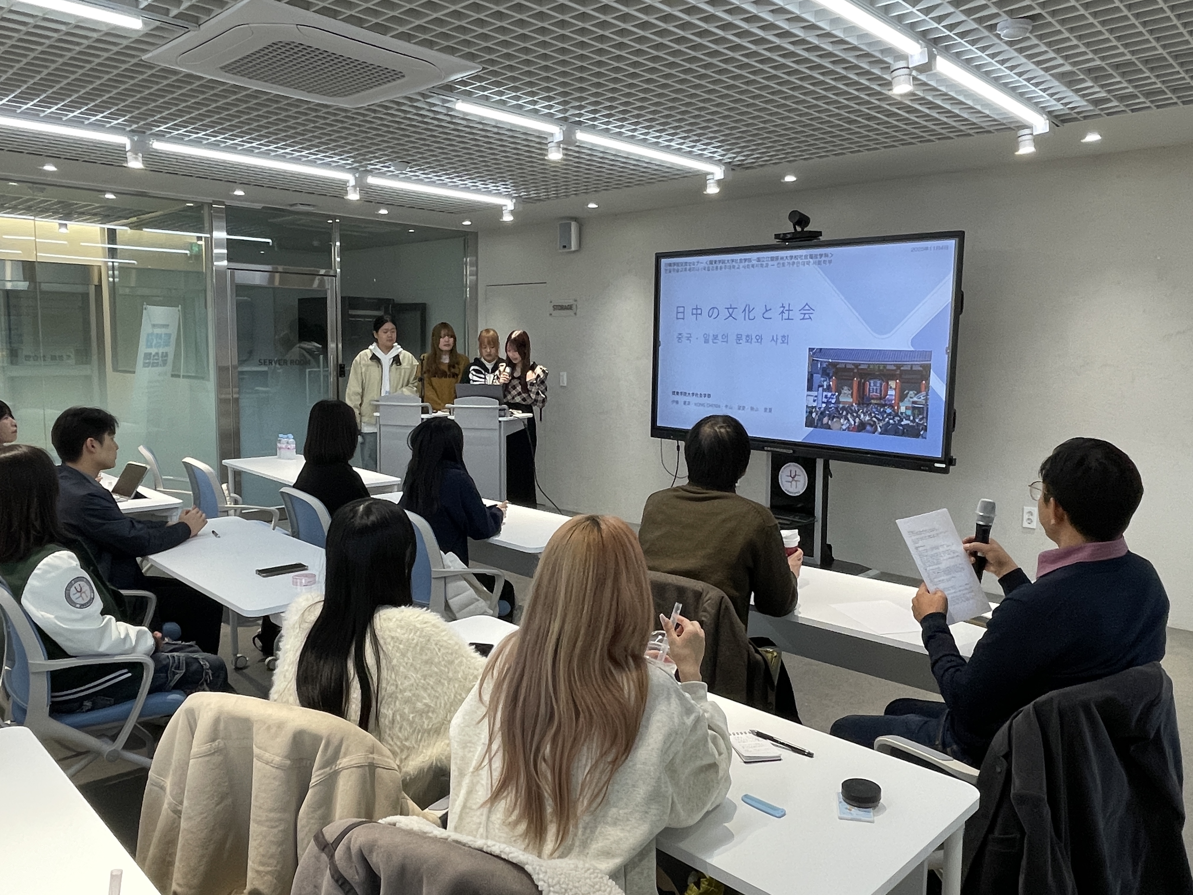 2부에서는 관동학원대학교 사회학부 학생들이 사회복지 실습 내용을 발표했으며, 이 과정에서 사회학부 정희성 교수가 동시통역을 맡았다. 이어 우리 대학 사회복지학과 학생들도 현장실습 발표를 진행했고, 동시통역은 이선영 교수가 담당했다.