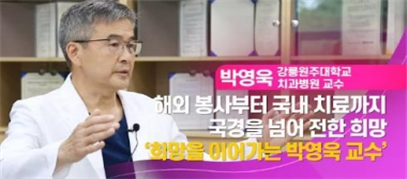 박영욱 교수의 헌신적인 의료봉사와 따뜻한 인술 이야기를 통해 국립강릉원주대학교 치과대학 및 강릉원주대학교치과병원의 소중한 가치인 “인간 사랑의 실천” 이 널리 전해지길 바랍니다.