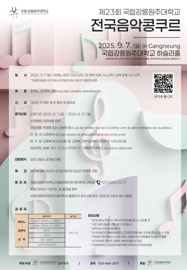제23회 국립강릉원주대학교 전국음악콩쿠르 참가신청연장 안내
